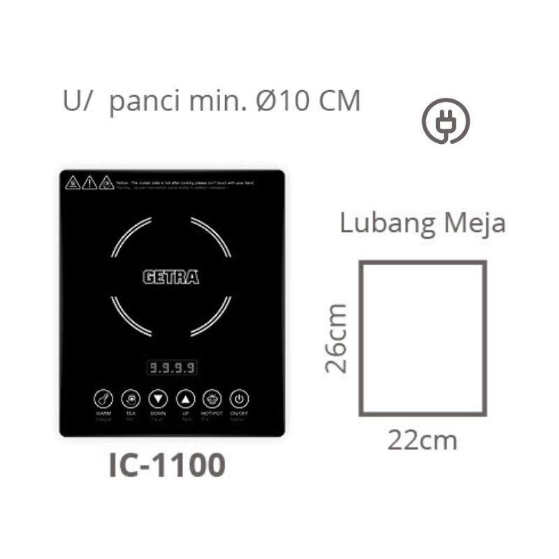 Induction Cooker tipe IC - 1100 digunakan untuk panci minimal Ø10cm