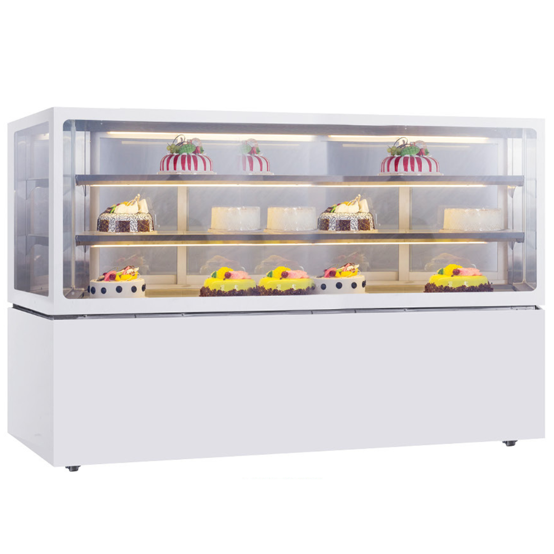 Rectangular cake showcase adalah mesin display yang berfungsi untuk memajang makanan seperti kue, puding sekaligus mendinginkan makanan agar tetap segar. Rectangular Cake Showcase bermaterial kaca tebal dan juga transparan, sehingga display makanan akan mudah terlihat dari luar dan tampak menarik