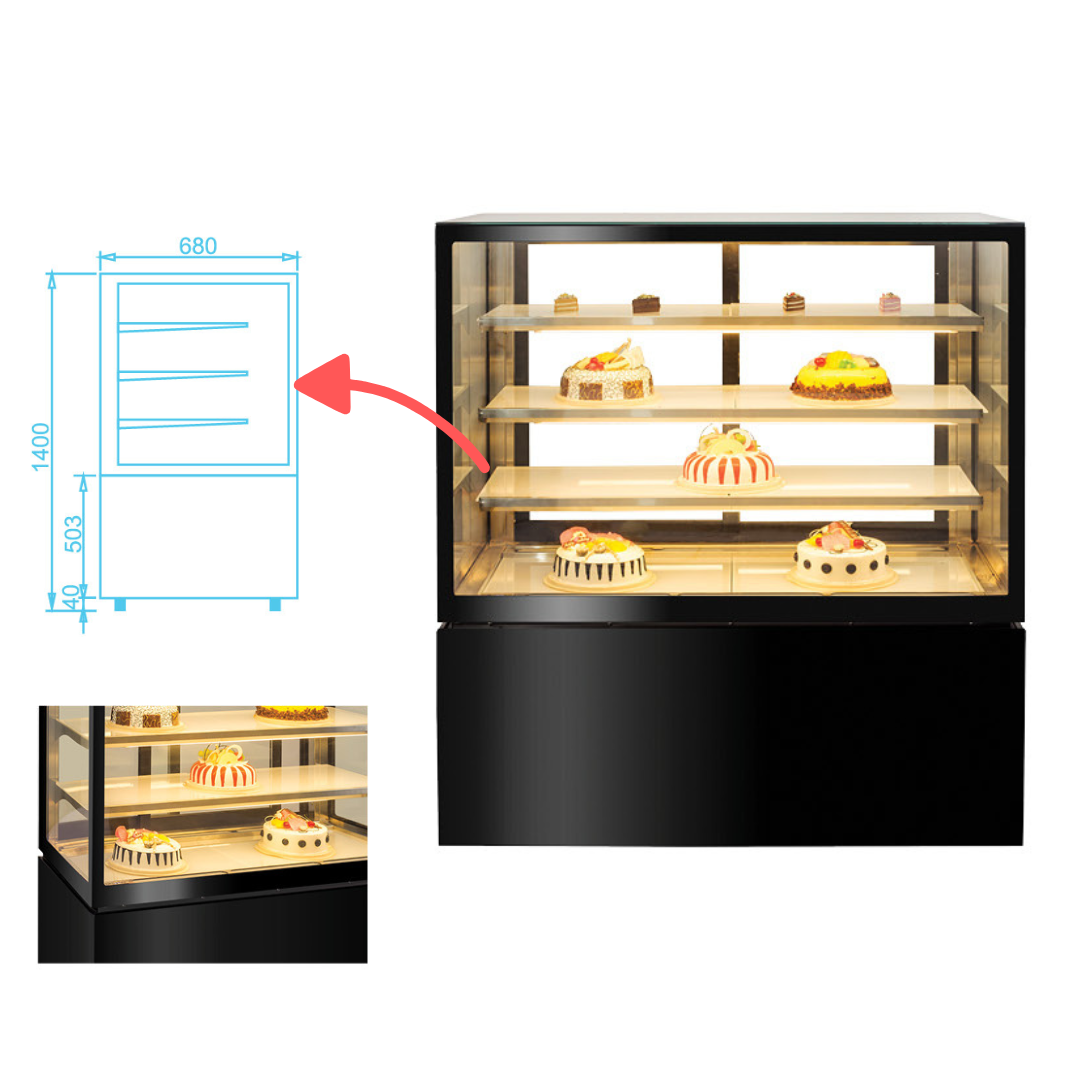 Black marble panel 3 shelves adalah kabinet pendingin bertemperature +2 ~ +8ºC untuk produk kue, dan coklat. dengan tingkat kelembapan tinggi (70%-80%) ideal untuk menjaga kesegaran produk. Kelebihan dari Black marble panel 3 shelves adalah memiliki desain yang anggun, dengan panel black marble, memberikan sentuhan elegan sekaligus tangguh.