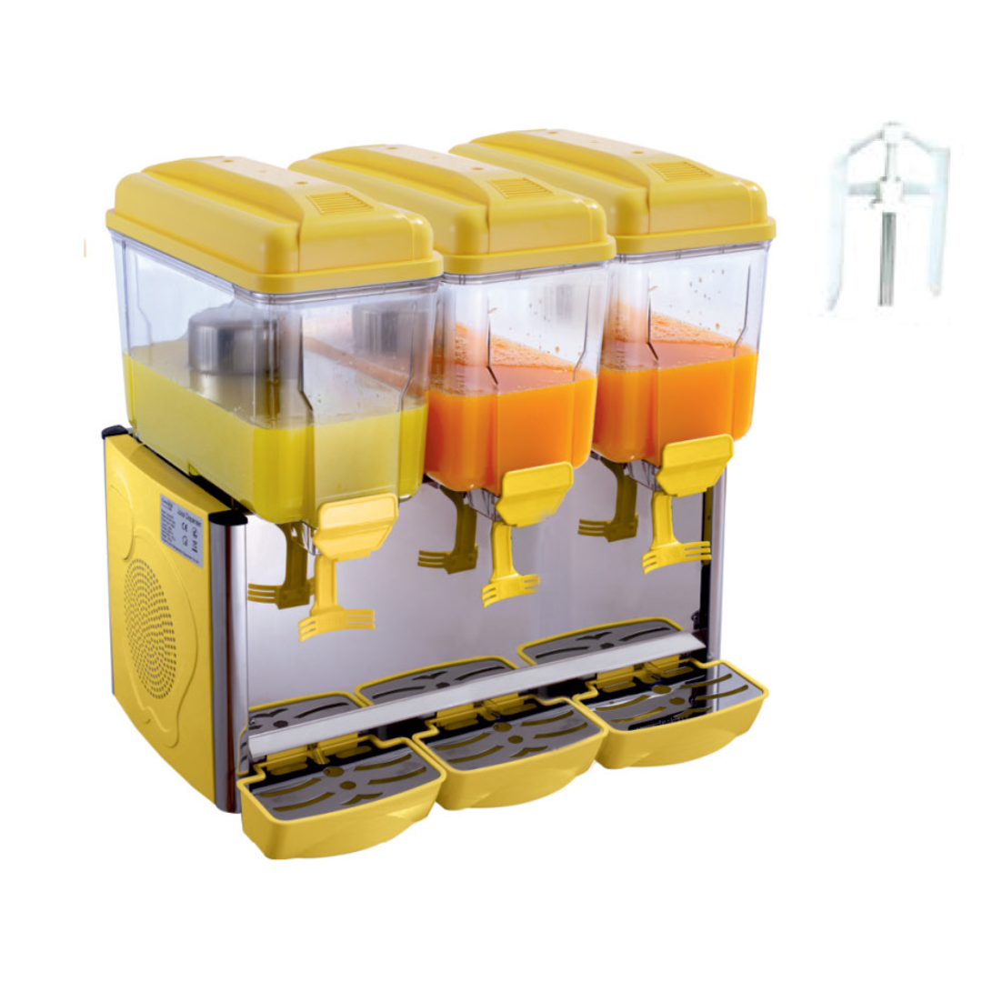 Juice Dispenser adalah dispenser untuk mendinginkan minuman siap saji (ready to drink) sekaligus menjaga kesegaran dan daya tahan produk lebih lama. Tersedia dalam dua jenis sistem aduk (stirring) dan sistem semprot (pray)