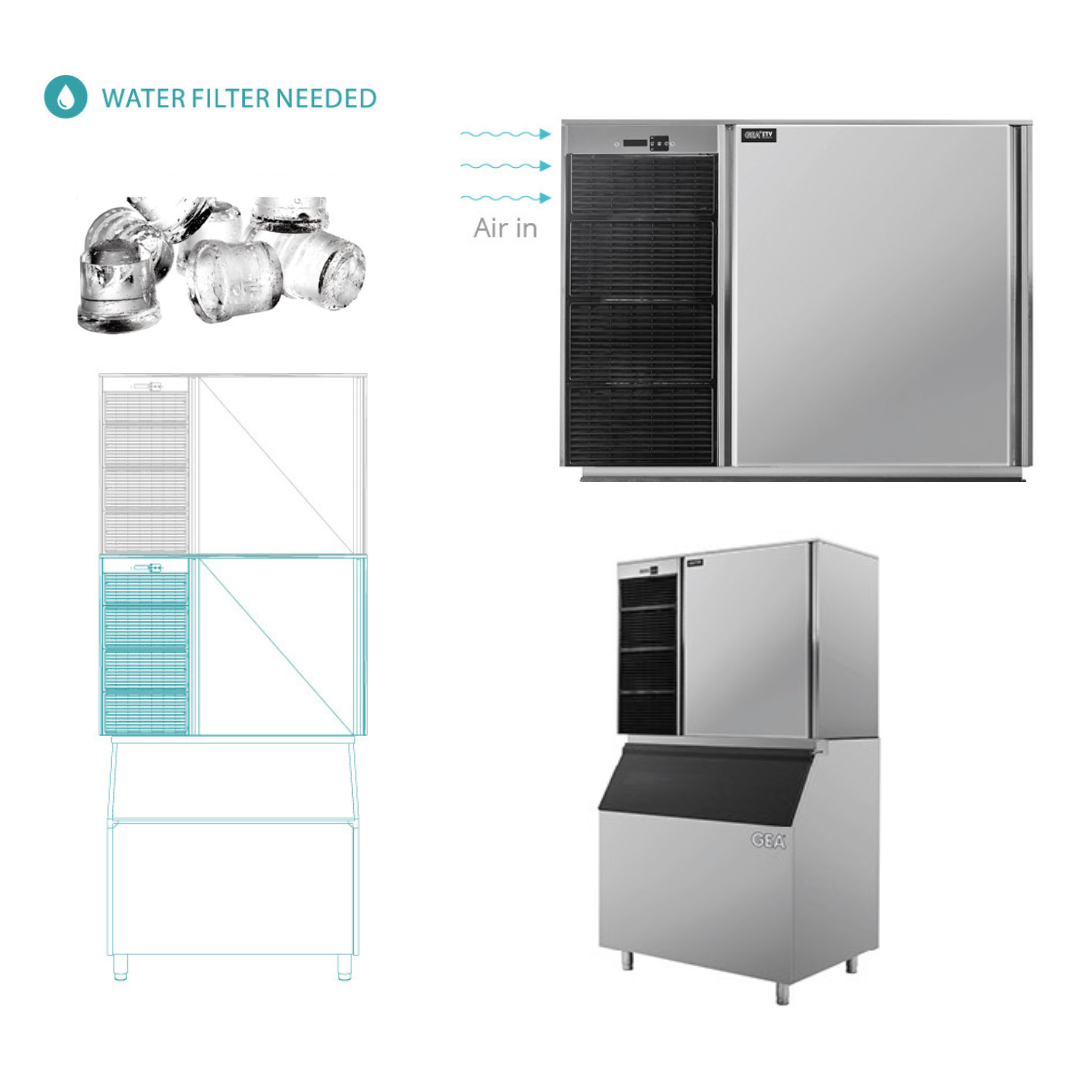 - Lowest electricity consumption only 18 KWH / 100 Kg ice (data with 60 Gr cube size)