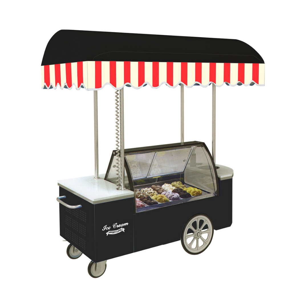 Gelato Showcase. Gerobak Es Cream gelato 12 GN Pan dengan teknologi dari itali yang memiliki sistem pendingin " fan cooling+auto defrost " dilengkapi thermosthat digital, kaca lengkung 2 lapis mencegah agar tidak berembun , dengan gerobak, anda bisa menyimpan barang dagangannya secara aman. anda juga bisa berhenti di mana saja dan kapan pun selagi ada konsumen yang ingin membeli.