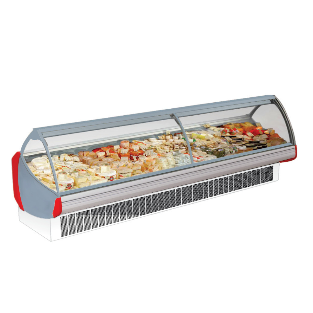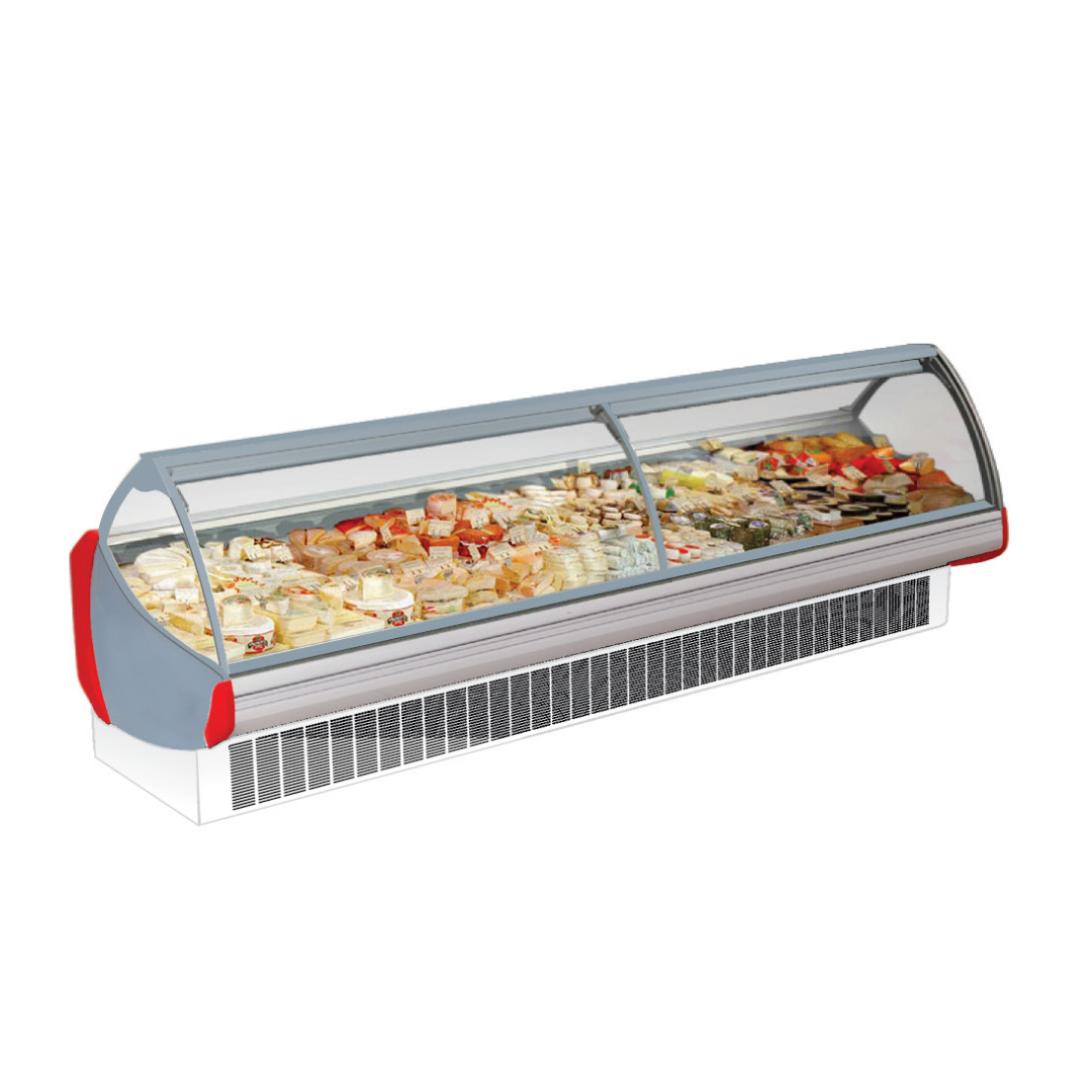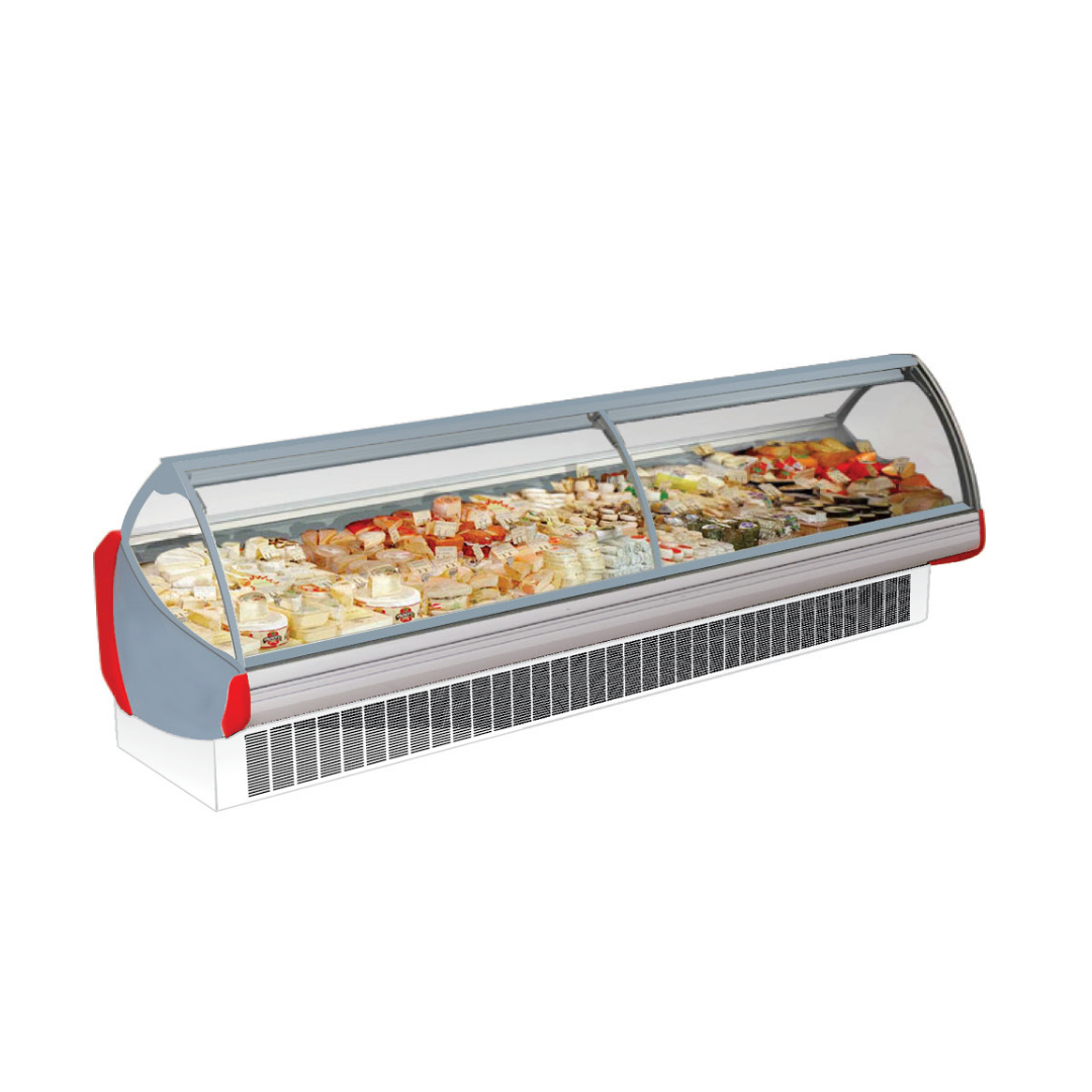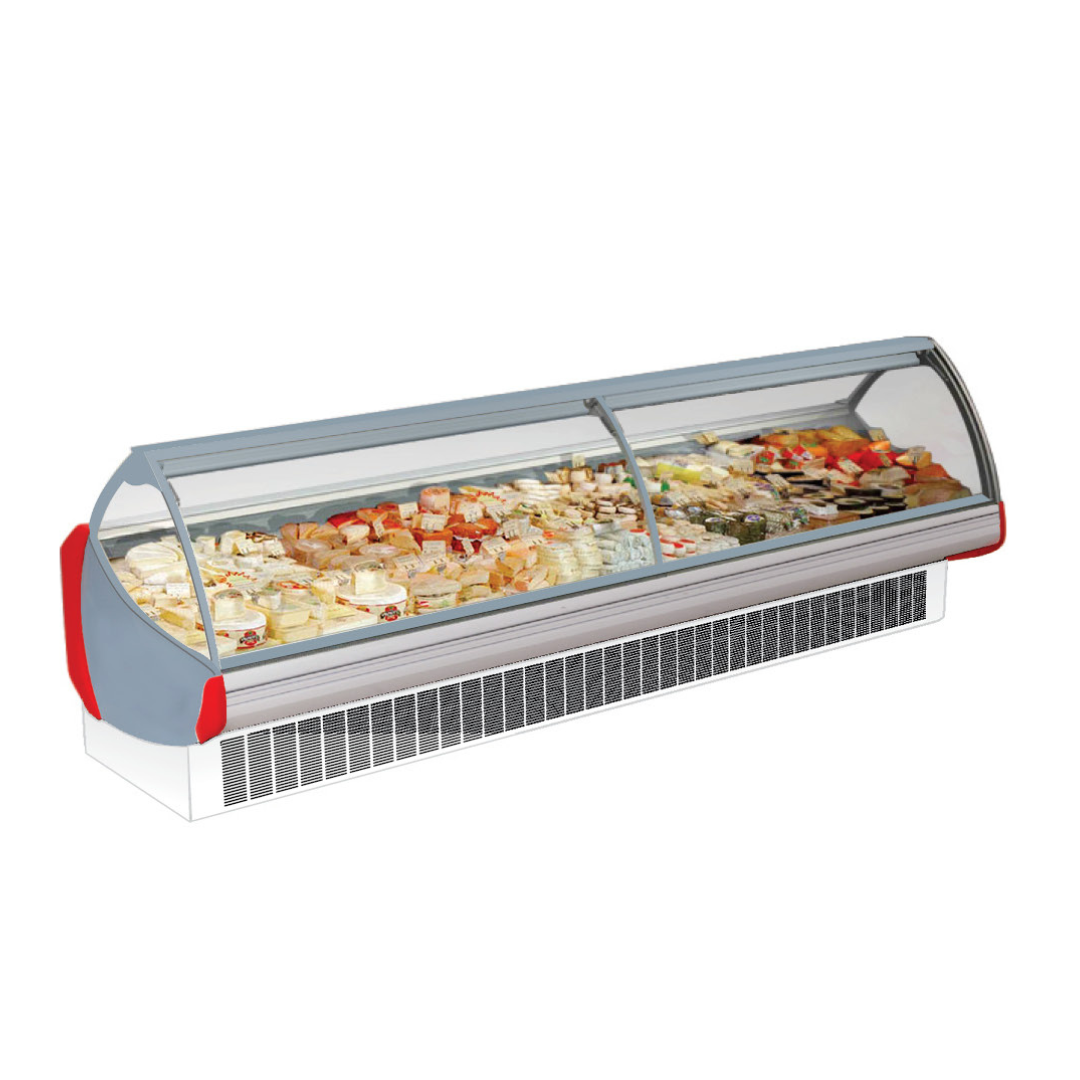 Curve Glass Serve Counter adalah mesin yang memudahkan supermarket Anda untuk memajang produk-produk makanan, frozen food dll, sekaligus mendinginkannya dalam suhu 2 hingga 8 derajat celcius agar lebih awet dan tahan lama.