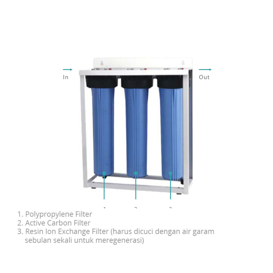 - Resin Ion exchange filter (Sebulan sekali untuk meregenerasi)