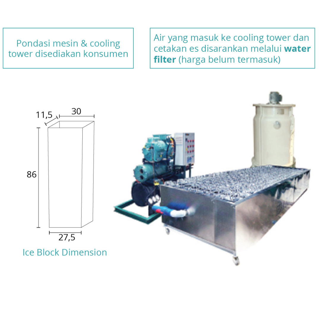 Mesin untuk menghasilkan es balok yang sangat efisien, mudah dalam pemasangan dan pengoperasian. Untuk memudahkan dalam transportasi, mesin dibagi menjadi 3 bagian :
