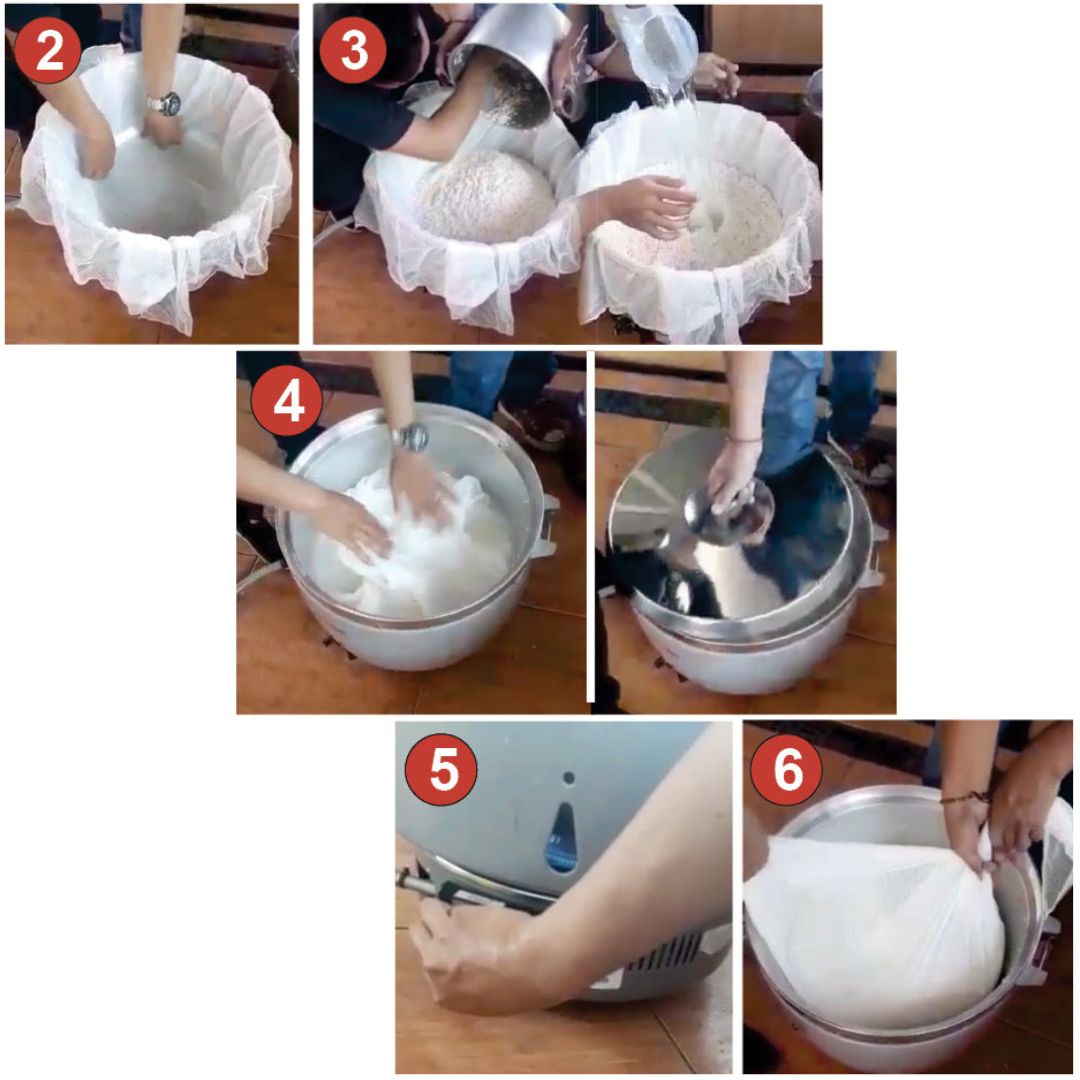 - Turn on the rice cooker (stove0, wait until the rice cooks