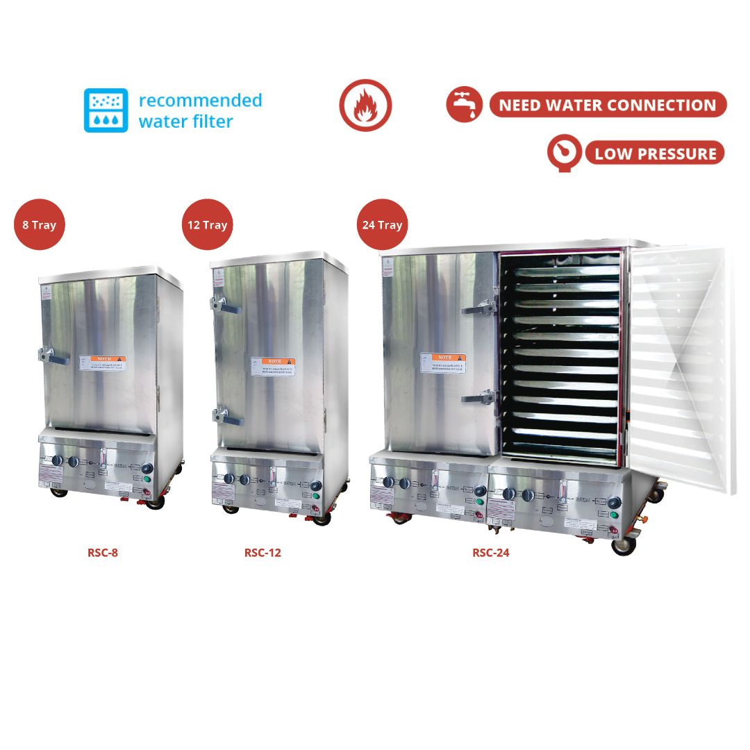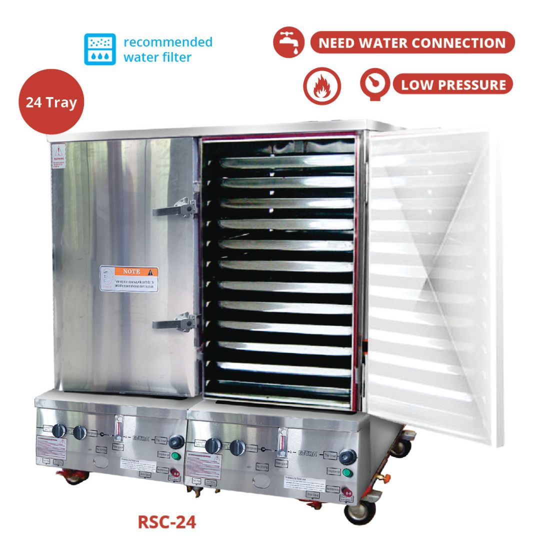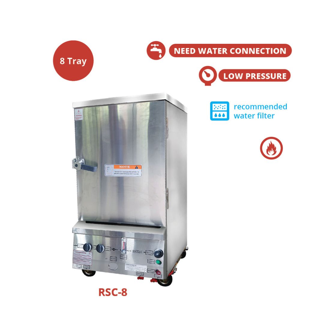 Gas Rice Cooker adalah mesin untuk memasak beras dengan cara di steam (menguapkan air panas/ mengukus), sehingga nasi lebih empuk dan pulen. Mampu memasak beras 67 kg hingga 202 kg dengan cepat dan praktis. Dengan Perforated Tray (Nampan Berlubang) bisa untuk mengukus bakpao, dimsum,jagung, tahu dll.