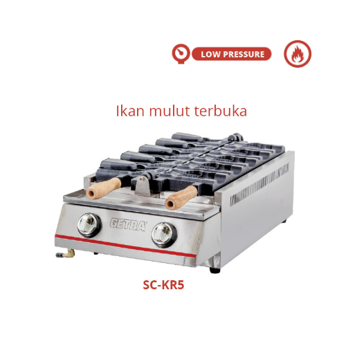 Alat pembuat wafel ikan profesional yang dapat menghasilkan wafel taiyaki (kue bentuk ikan) berwarna cokelat keemasan untuk berbagai macam aplikasi, termasuk toko roti, kafe, dan restoran. Alat ini terbuat dari baja tahan karat dan memiliki lapisan teflon anti lengket agar mudah dibersihkan. Temperaturnya dapat dikontrol untuk menghasilkan wafel dengan kerenyahan dan tekstur yang sempurna.