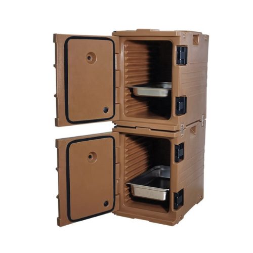 Cabinet 2 pintu dengan insulasi rigid PU tebal hingga 5 cm, sehingga mampu mempertahankan suhu panas produk makanan/masakan yang disimpan hingga 6-10 jam. Kabinet sudah dilengkapi roda agar mudah didorong atau dipindah-pindah, cocok untuk menjaga masakan agar tetap hangan di Restoran, Hotel, Cafe, Catering, dll.